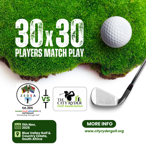 The spirit of competition meets the elegance of the game! On November 11th, 2025, the Zambia–South Africa Golf Network (ZEDSA) will face off against City Ryder Golf Association in a thrilling 30×30 Players Match Play at the prestigious Blue Valley Golf & Country Estate, South Africa.